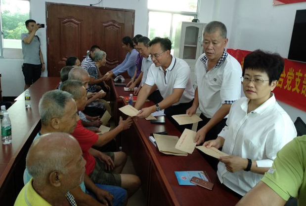 6月29日我司黨支部書記何春霞同志代表全星制藥與綜保區(qū)多家企業(yè)在綜保區(qū)黨組領導的帶領下,一同前往龍?zhí)伶?zhèn)龍?zhí)辽鐓^(qū)、三聯(lián)村、龍富村和龍新村看望慰問困難老黨員和貧困戶。
